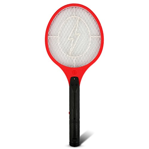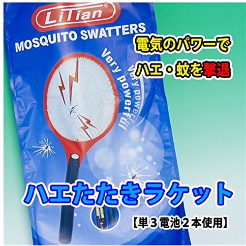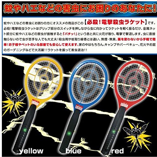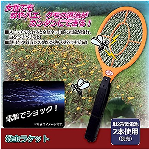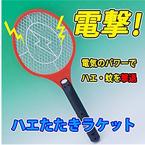 電撃殺虫ラケット ハエたたきラケット ナイス蚊っち 殺虫器 蝿や蚊を瞬殺 ハンド電子 モスキート ハエ フライ バグ たたきラケット 電気のパワーでハエ・蚊を撃退 全長51cm ネット部22.5cm×19cm 単3電池2本別売 (レッド)