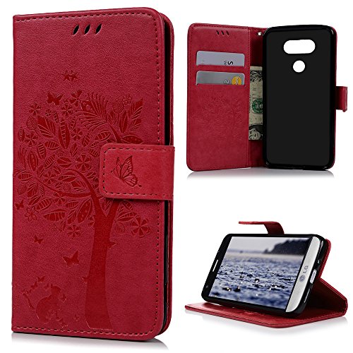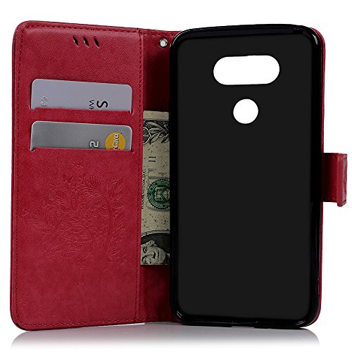 BADALink LG g5財布ケースLG h868財布型ケースフリップフォリオスタンドケースエンボス加工ツリーPUレザーケースwith Slim - fit保護耐衝撃Tpu内側バンパーカードスロットハンドストラップfor LG g5 / LG h868 QSZH-BK117400