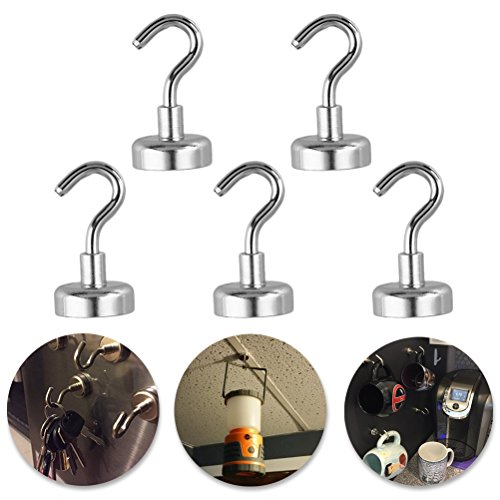 金属マグネットフック、bagvhandbagro 5パック40lb強力なネオジム頑丈マグネットフック、for掛け帽子、キー、タオル、服、台所用品、工業製品