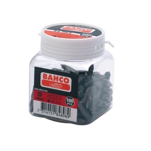 BAHCO number 2 PoziDriv bits in storage jar contains 100. This jar of PoziDriv bits are ideal for the tradesman or contractor with high power driver usage. These fit all 1/4 inch hex bit shank bit holders. They are reusable which is ideal for storing screws, small parts, and tools.