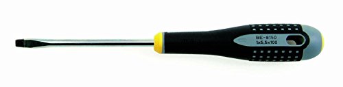 BAHCO 8 3/4 inch ergo slotted screwdriver features three component ergonomically designed handle that provides comfort and maximum grip even with oily hands. Color coded handles indicate tip type and show tip type symbol on the bottom of the handle for quick identification. The tips are black oxide to prevent chipping of chrome to reduce possible contamination at work location. The tip width is 1/4 of an inch.