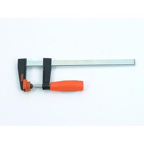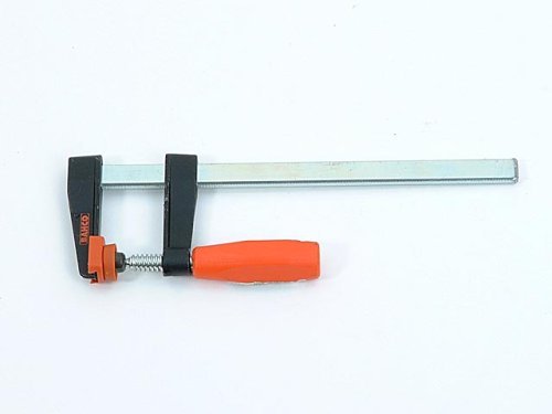 Professional F clamp with one fixed and one sliding bracket, fitted to a galvanized profiled steel rail. Zinc plated screw with special, plastic covered ball swivel foot for secure and easy clamping of odd shapes. Tough and weather resistant, square shaped plastic grip.