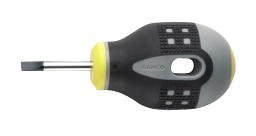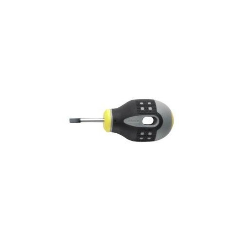 BAHCO 3 1/4 inch ergo slotted screwdriver with cabinet tip features the three component ergonomically designed handle provides comfort and maximum grip even with oily hands. The color coded handles indicate tip type and show tip type symbol on butt of handle for quick identification. The cabinet tip allows access to recessed screws. The black oxide tips prevent chipping of chrome to reduce possible contamination at work location. The tip width is 7/32 of an inch.