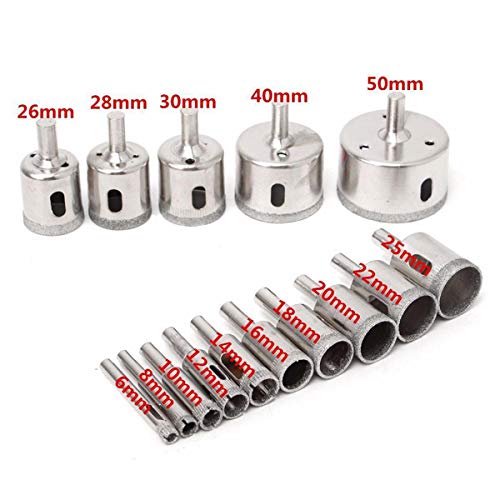 Baitaihem ダイヤモンドドリル ホールソー 穴あけ ダイヤモンドビット ガラス、陶器、大理石研削 6mm-50mm 15本入り