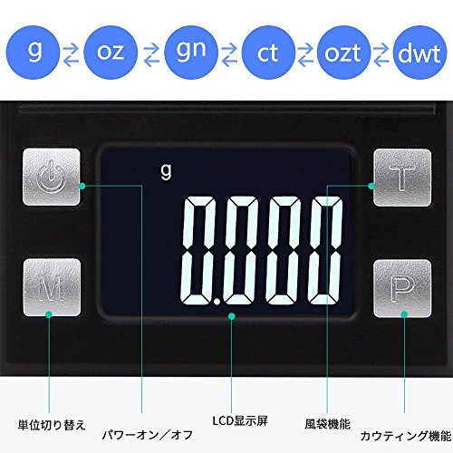 - 本製品は個数を計測できます、風袋引き機能、カウンティング機能、自動校正、オートオフ機能 など付き、LEDバックライト付いていて見やすくなります。
