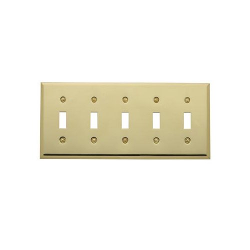 4775.030。CD仕上げ:真鍮機能が導入されています。 – 5ギャングトグルスイッチプレートです。-正方形ベベルデザインが施されています。‐面取りエッジ‐。色/仕上げ: – 真鍮仕上げ。-satinニッケル仕上げをしました。寸法: – 全体の寸法:4.5 " H x 10 " W