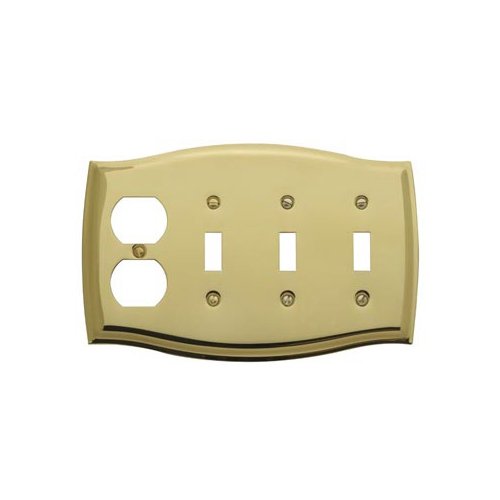 Baldwin 4783.030。CD Colonialデザインデュプレックスwith Triple Toggleコンボスイッチプレート、光沢真鍮 – ラッカー塗装