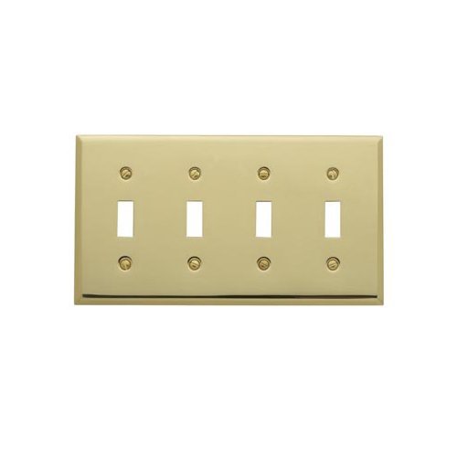 4772.030.CD Finish: Polished Brass Features: -Quad toggle switch plate.-Classic square bevel design.-Beveled edge. Color/Finish: -Polished brass finish.-Venetian bronze finish.-Satin nickel finish.-Polished chrome finish. Dimensions: -Overall dimensions: 4.5'' H x 8.125'' W.