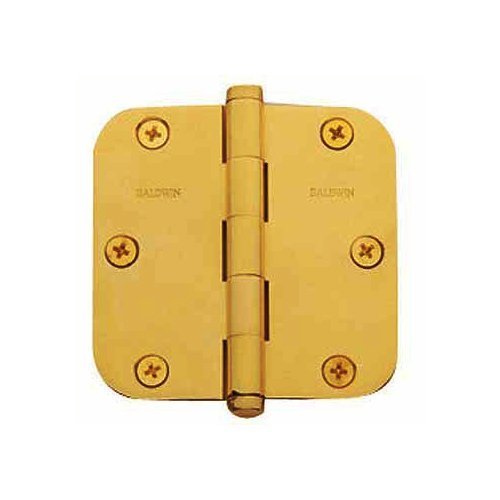 Stainless steel, rust-proof pins provide durability. Baldwin 1135.030.I Polished Brass 3-1/2" x 3-1/2" 5/8" Radius Corner Brass Hinge Packed with wood screws. Hinges are sold 1 per box