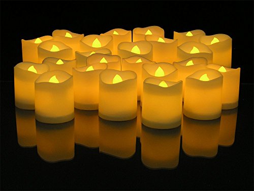 - SET of 24 LED Flameless Votive Candles with batteries. Battery operated with realistic flickering flame.