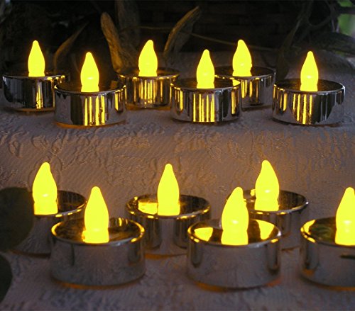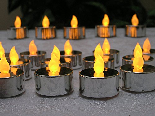 - METALLIC COLORED CANDLES. These are the perfect silver color that would enhance any celebration or home decor. Since they are FLAME FREE they are safe around children and pets. No messy wax or oder. Unscented tea lights are ideal for anyone with allergies.