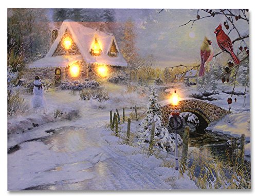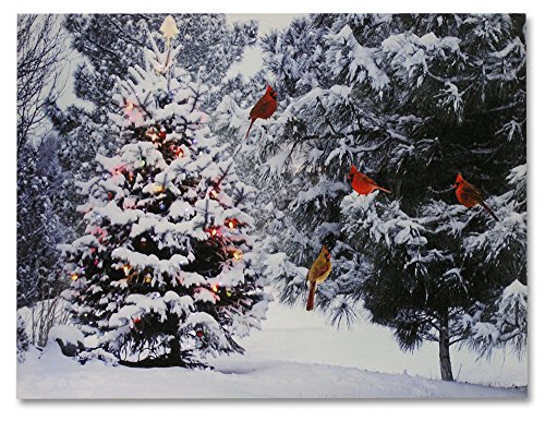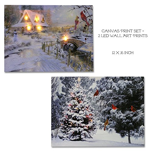 冬シーンキャンバス印刷セット – 2 LED壁アートプリント雪とCardinals – Lighted壁アートのクリスマス