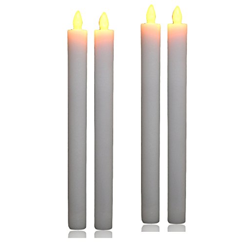 LED Flamelessちらつきテーパキャンドルwithタイマー – Real Waxホワイトカラーwith黄色Flame – セットof 4 – 9.75インチ高