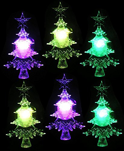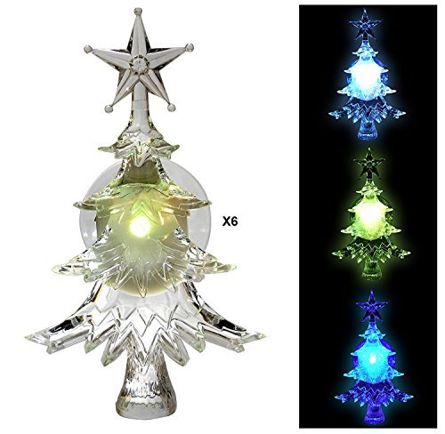 LED Christmas Tree Window Cling Decoration - Set of 6. LED Color-Changing. Apply to windows and any smooth surface with suction cup. Each tree includes 2 'CR2032' batteries. Each pc measures 5'H approx.