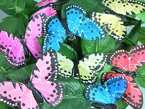 - 蝶のクリップ。本物そっくりなオオカバマダラ12個セット。いろんな色の蝶で、ウェディングブーケ、リース、または生け花に添えるのに最適。イエロー、グリーン、ピンク、パープル、ブルー、およびレッドを取り合わせた春色。