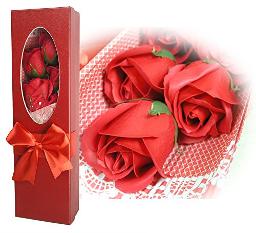 - バラ(外箱が付属)。バラの花×5本セット。サイズ:長さ 13インチ×幅 3.75インチ×奥行き 2.25インチ。