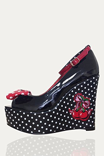 Banned Apparel - Cherry Open Toe Wedge 6.5