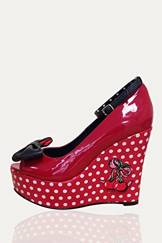 Banned Apparel - Red Cherry Open Toe Wedge 5