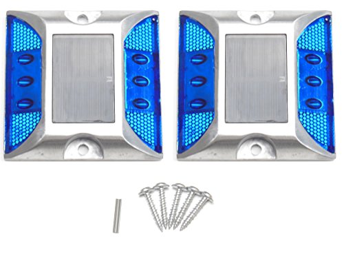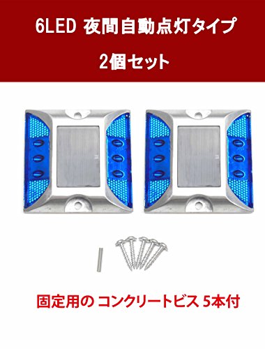 お得な 2個 セット ! 3 LED × 2 の 6 LED ソーラー 充電式 自動夜間常時点灯 防水 道路鋲 路肩標 誘導灯 ( 青色 発光 )と