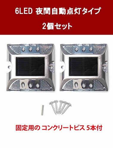 - お得な 2個 セット ! 3LED × 2面 の 6LED ソーラー充電式 自動点灯 防水 道路鋲 路肩標 誘導灯 ( 夜間常時点灯 )と 固定用 コンクリートビス プラグレス 座付 4×25mm 5本 ( パッド 1本付 )の セット商品 です。