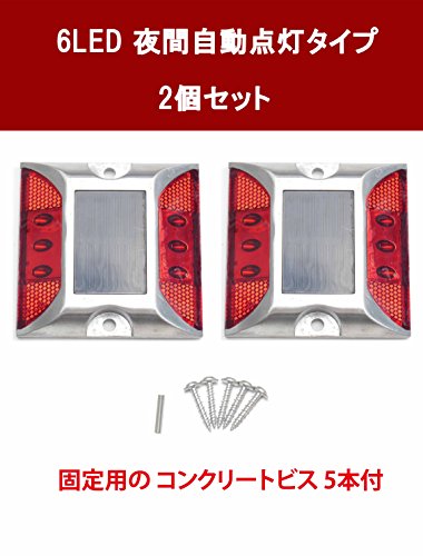 お得な 2個 セット ! 3 LED × 2 の 6 LED ソーラー 充電式 自動夜間常時点灯 防水 道路鋲 路肩標 誘導灯 ( 赤色 発光 )と