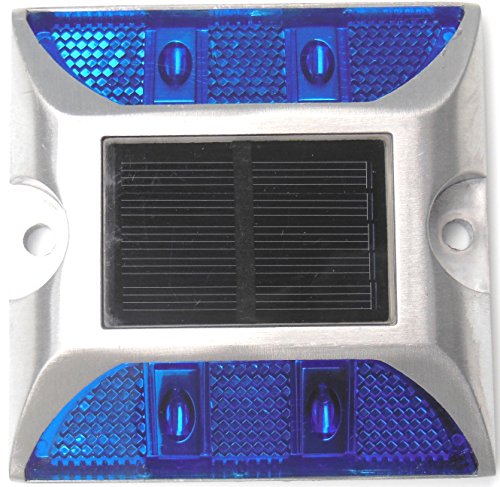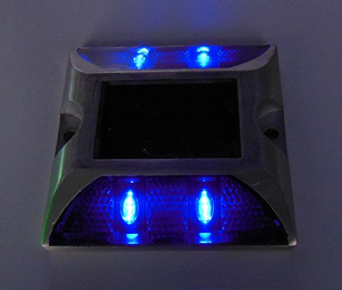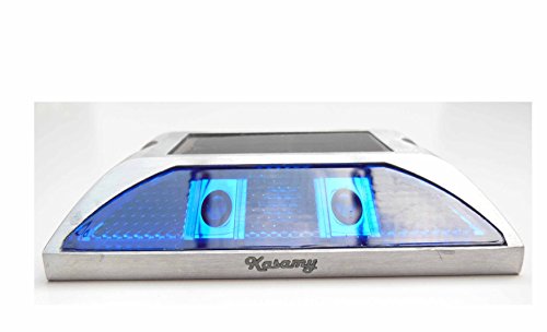 Kasamy 4 LED 道路 鋲 路肩 標 誘導 灯 ソーラー 充電 式 セット ( 青 点滅 1個 + 固定用 ビス 3本 )