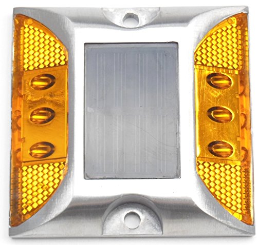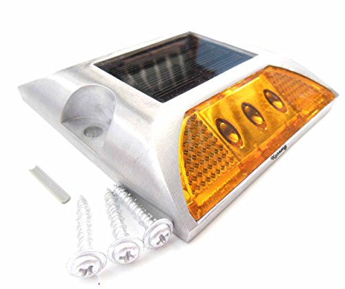 Kasamy 6 LED 道路 鋲 路肩 標 誘導 灯 ソーラー 充電 式 セット ( 黄 点滅 1個 + 固定用 ビス 3本 )