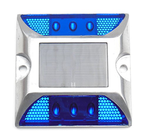 6 LED 道路 鋲 路肩 標 誘導 灯 ソーラー 充電 式 セット ( 青 点滅 1個 + 固定用 ビス 3本 )