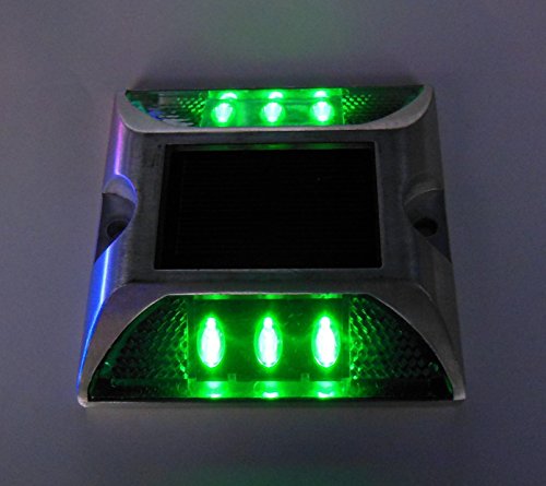 3 LED × 2 の 6 LED ソーラー 充電式 自動点滅 防水 道路鋲 路肩標 誘導灯 ( 緑色 発光 )と