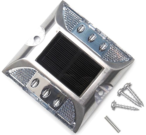 Kasamy 6 LED 道路 鋲 路肩 標 誘導 灯 ソーラー 充電 式 セット ( 白 点滅 1個 + 固定用 ビス 3本 )