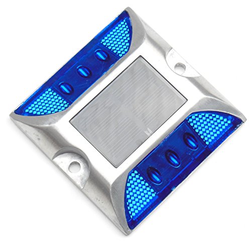 Kasamy 6 LED 道路 鋲 路肩 標 誘導 灯 ソーラー 充電 式 セット ( 青 点滅 2個 + 固定用 ビス 5本 )