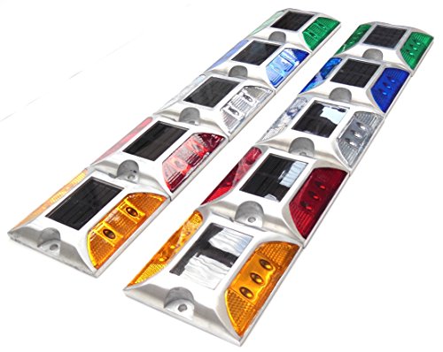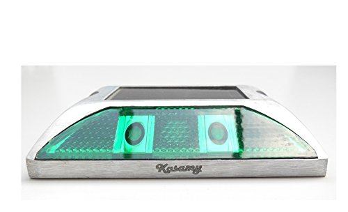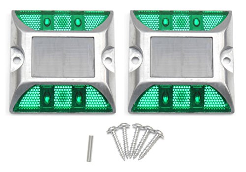 Kasamy 4 LED 道路 鋲 路肩 標 誘導 灯 ソーラー 充電 式 セット ( 緑 点滅 2個 + 固定用 ビス 5本 )