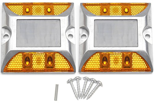 Kasamy 4 LED 道路 鋲 路肩 標 誘導 灯 ソーラー 充電 式 セット ( 黄 点滅 2個 + 固定用 ビス 5本 )