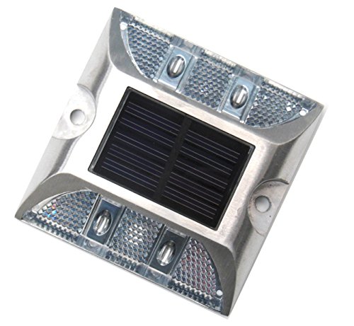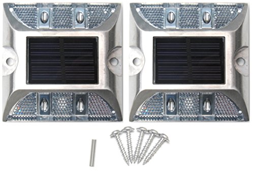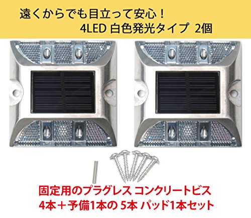 Kasamy 4 LED 道路 鋲 路肩 標 誘導 灯 ソーラー 充電 式 セット ( 白 点滅 2個 + 固定用 ビス 5本 )