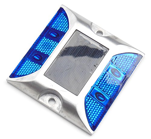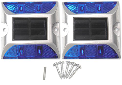 Kasamy 4 LED 道路 鋲 路肩 標 誘導 灯 ソーラー 充電 式 セット ( 青 点滅 2個 + 固定用 ビス 5本 )