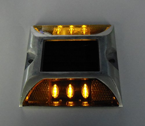 お得な 2個 セット ! 3 LED × 2 の 6 LED ソーラー 充電式 自動点滅 防水 道路鋲 路肩標 誘導灯 ( 黄 色 点滅 )と