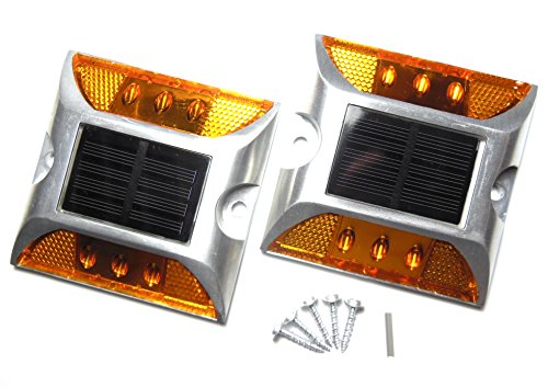 Kasamy 6 LED 道路 鋲 路肩 標 誘導 灯 ソーラー 充電 式 セット ( 黄 点滅 2個 + ビス 5本 )
