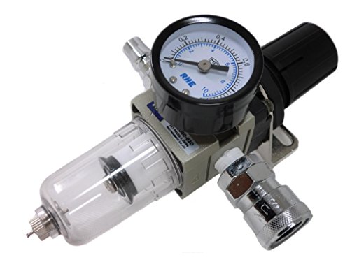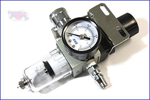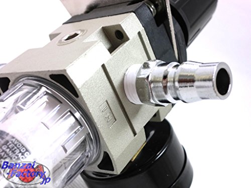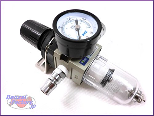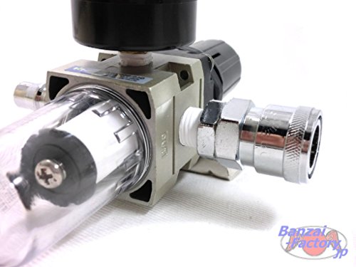 アルミ製エアーレギュレーター/フィルター付き 圧力調整 水分ほこり除去 1/4カプラー(オス、メス) シールテープ付き,各部締付け完成品