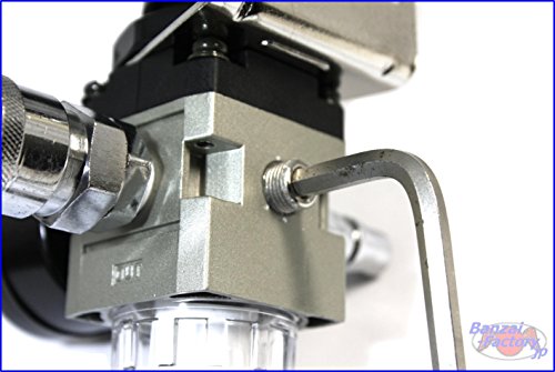 - 圧力計を裏側へも取り付け可能なので、エアの向きに囚われず大変便利です!!余計なエア漏れによる、流量の不足と正確な圧力表示の為に各部シールテープ巻付け、及び締付け済み完成品です。