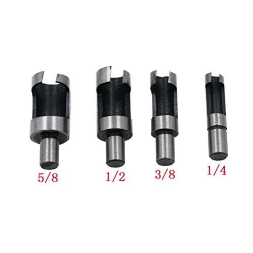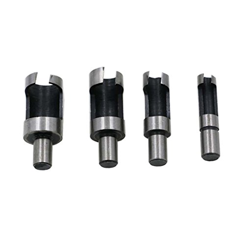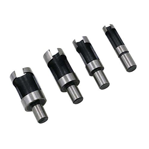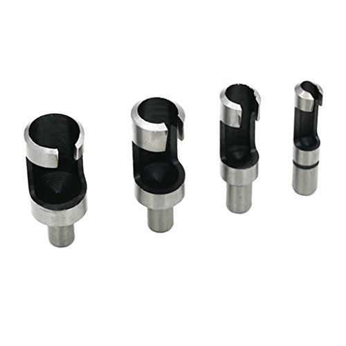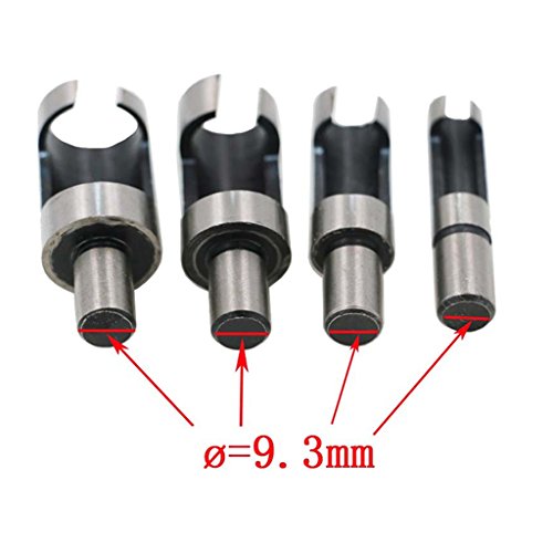 - 異なるサイズのプラグを作成するために使用できるこのセットの4サイズの木製のプラグカッターを示します