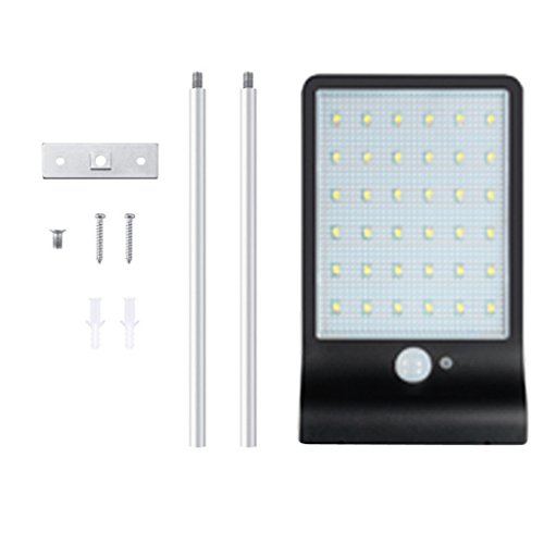 Baoblade Baoblaze 36LED ソーラーライト 屋外 防水 省エネ 防犯 ウォールライト 人感センサー 白&黒 ポール付き/ なし 玄関 通路 駐車場 常時点灯 - 黒;ポール付き