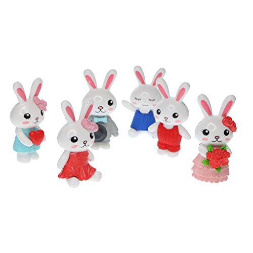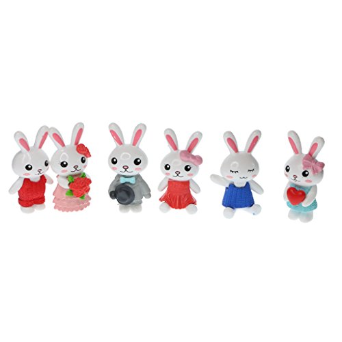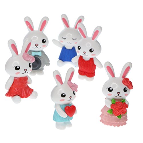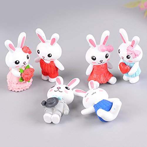 Baoblaze 全13種 マイクロ風景置物 樹脂 庭の装飾 ドールハウス ミニチュア 盆栽 インテリア - 6匹のウサギ