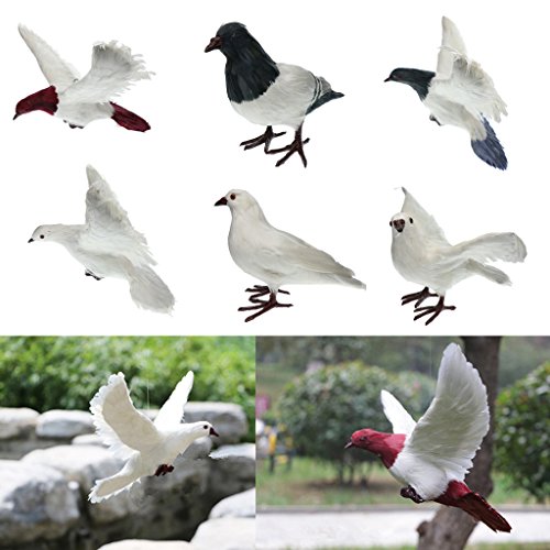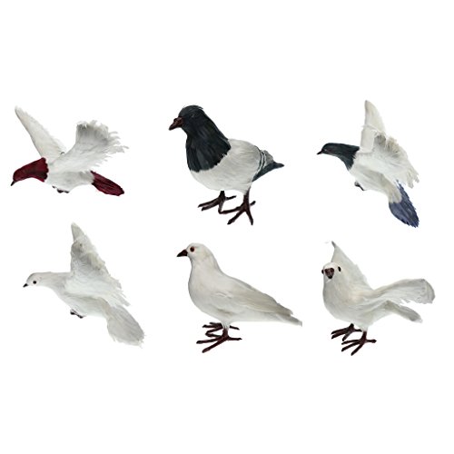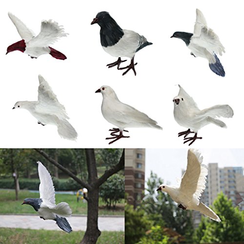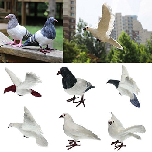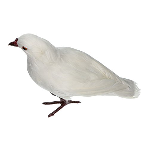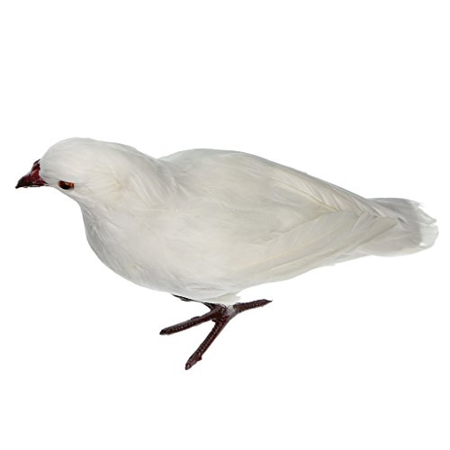 Baoblaze 全7種 人工フェザー 鳥の装飾 生き生き 庭の置物 鳩 屋外 おとり インテリア デコレーション - #1ホワイト・スタンド