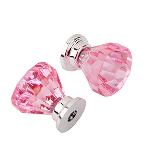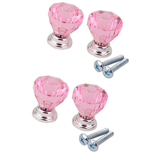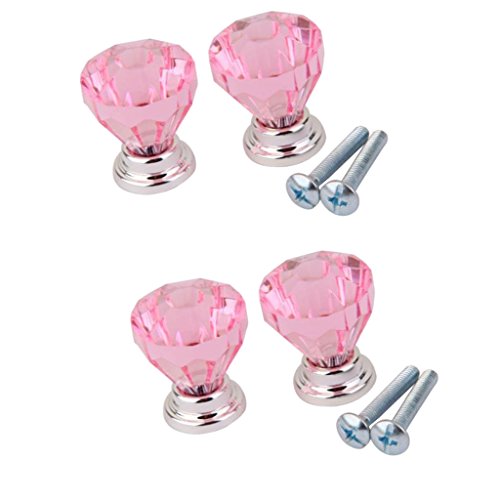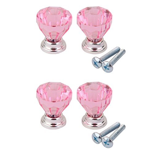 Baoblaze クリスタルガラス製 引き出し用 ノブ ダイヤモンド型 おしゃれ ドア 取っ手 ハンドル ネジ付き 装飾 4pcs入り ピンク