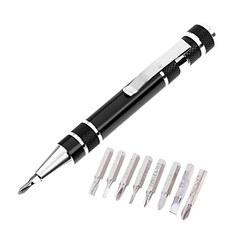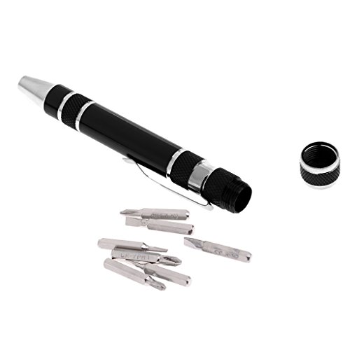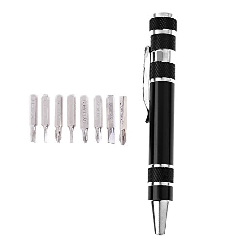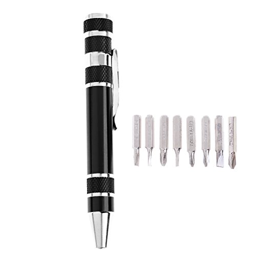 Baoblaze 8 in 1ペン 工具ペン 精密 ねじ回し スクリュードライバー 8インチ 全4色 - 黒