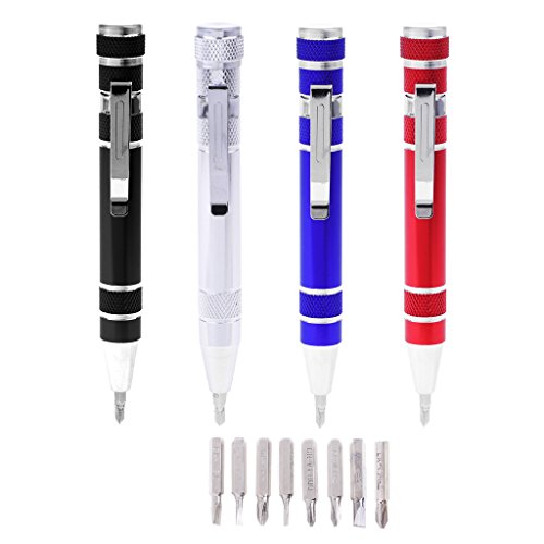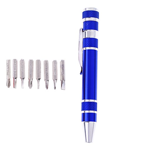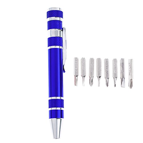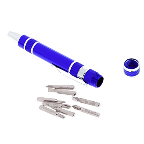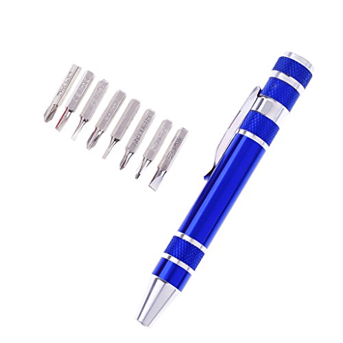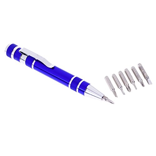 Baoblaze 8 in 1ペン 工具ペン 精密 ねじ回し スクリュードライバー 8インチ 全4色 - 青