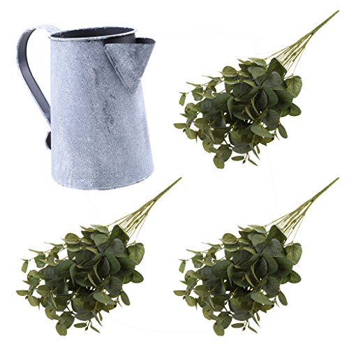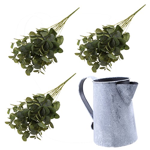 Baoblaze 生き生き 人工植物 シルク 現実的 15個頭部人工ユーカリ葉(3個)+メタルフラワーバケツ壺 装飾小物 全3色 - 緑