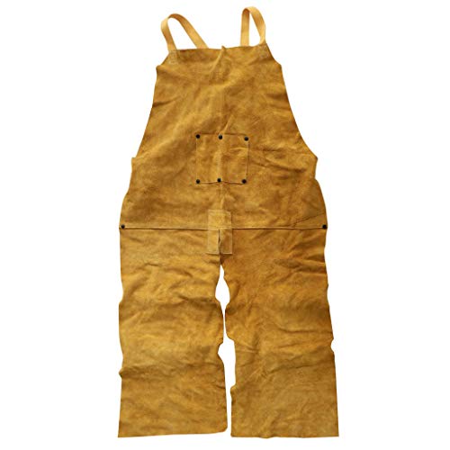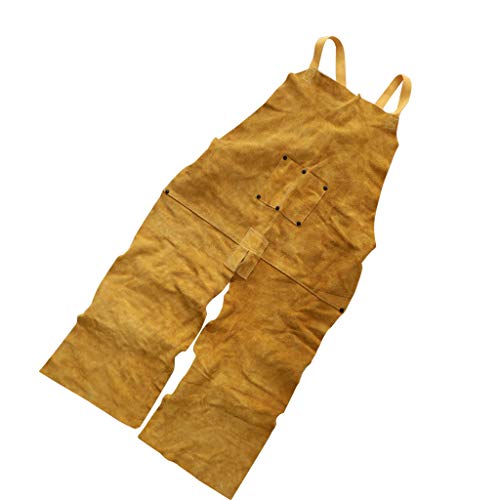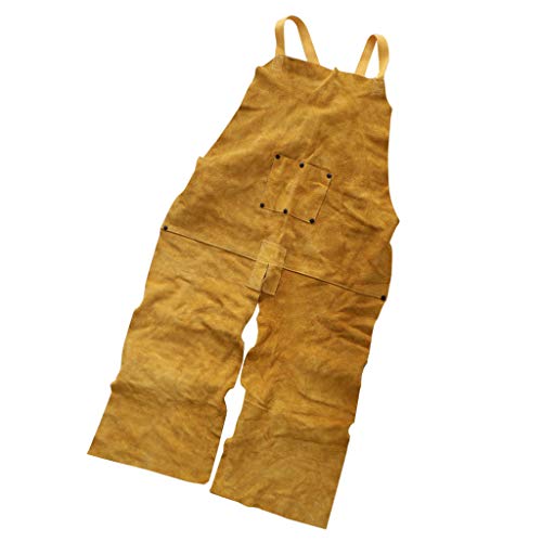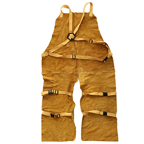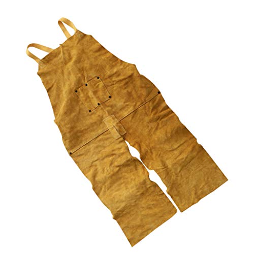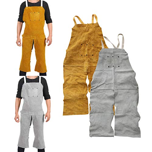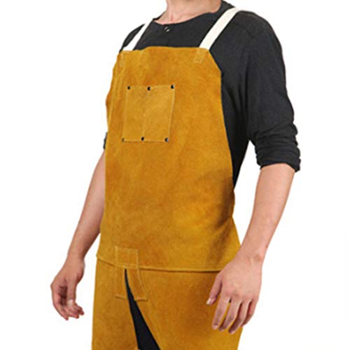 Baoblaze 溶接エプロン 防護服 断熱 耐火性 牛革 防炎 やけど対策 2層 快適性 - イエロー