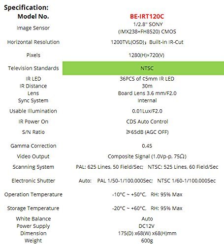 Baomabao 1200TVL Weatherproof Security Surveillance IR Camera (BE-IRT120C) NTSC [並行輸入品]