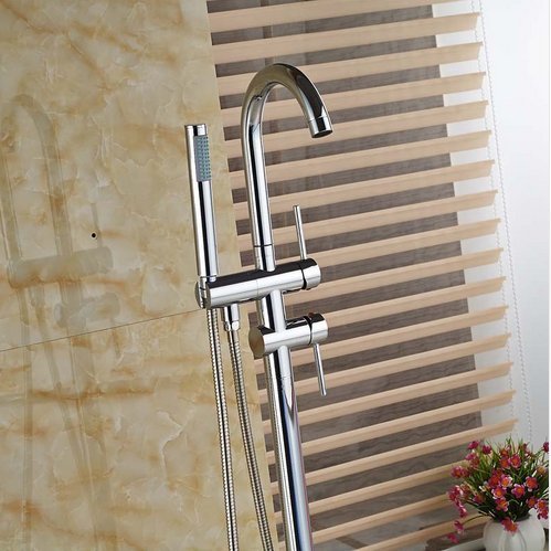 Single Handle with Diverter Floor Mount Tub Filler Faucet with Hand Shower Chrome Finish
